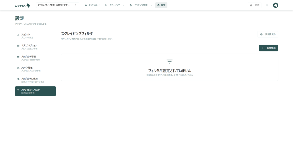 まずは、設定画面からスクレイピングフィルタを開きましょう。
