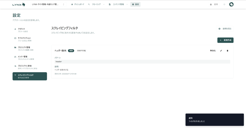 全体スクレイピングを行う前に設定しておけば、必要な情報のみに絞って記事を管理することができるようになります。